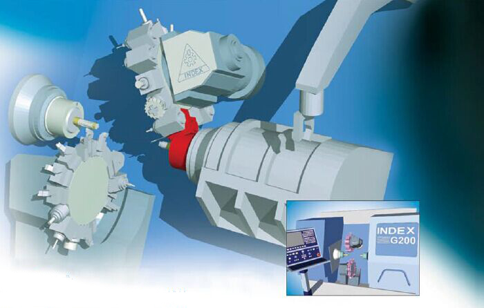 一個(gè)簡單的但(dàn)代價昂貴的錯誤将造成:主軸上(shàng)完成了一次切削後(左圖),上(shàng)方刀塔後退時(shí),與輔軸發生(shēng)了碰撞! VERICUT 可(kě)以在實際加工發生(shēng)機床碰撞之前,發現這樣的錯誤。