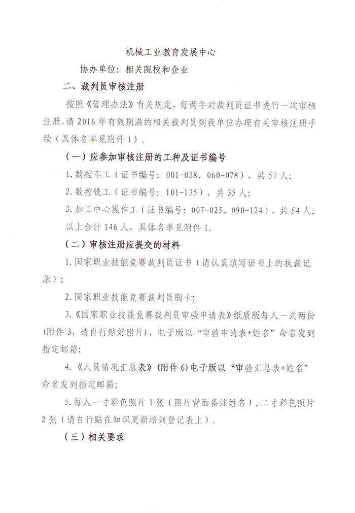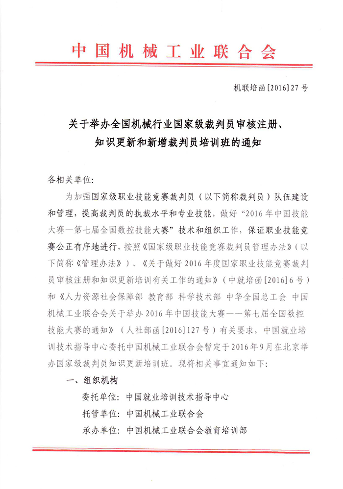 關于舉辦機械行(xíng)業裁判員審核注冊、知識更新和(hé)新增裁判員培訓班的通(tōng)知