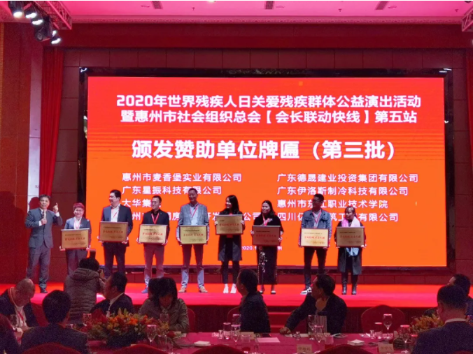 2020年12月3日下午,在惠州市民政局、惠州市教育局、惠州市婦聯、惠州市殘聯指導下,由惠州市社會(huì)組織主辦的《2020年世界殘疾人(rén)日關愛(ài)殘疾群體(tǐ)公益演出暨惠州市社會(huì)組織總會(huì)【會(huì)長聯動快線】第五站(zhàn)》在惠城區(qū)玉州酒店(diàn)舉辦,廣州星正科技有限公司作(zuò)為(wèi)贊助單位之一,總經理(lǐ)楊成振代表公司參與了本次活動。