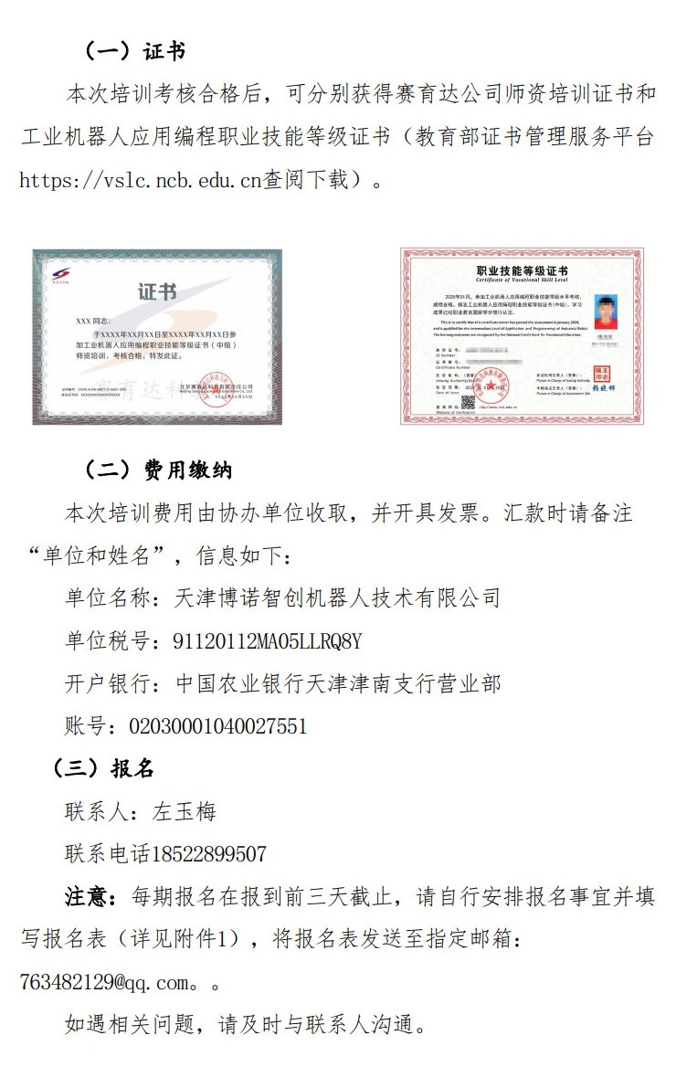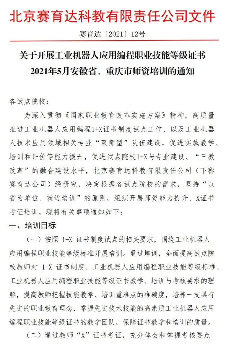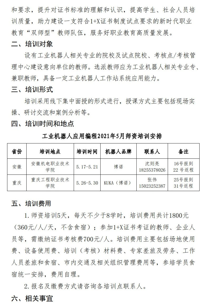 關于開(kāi)展工業機器(qì)人(rén)應用編程職業技(jì)能等級證書(shū)2021年5月師(shī)資培訓的通(tōng)知