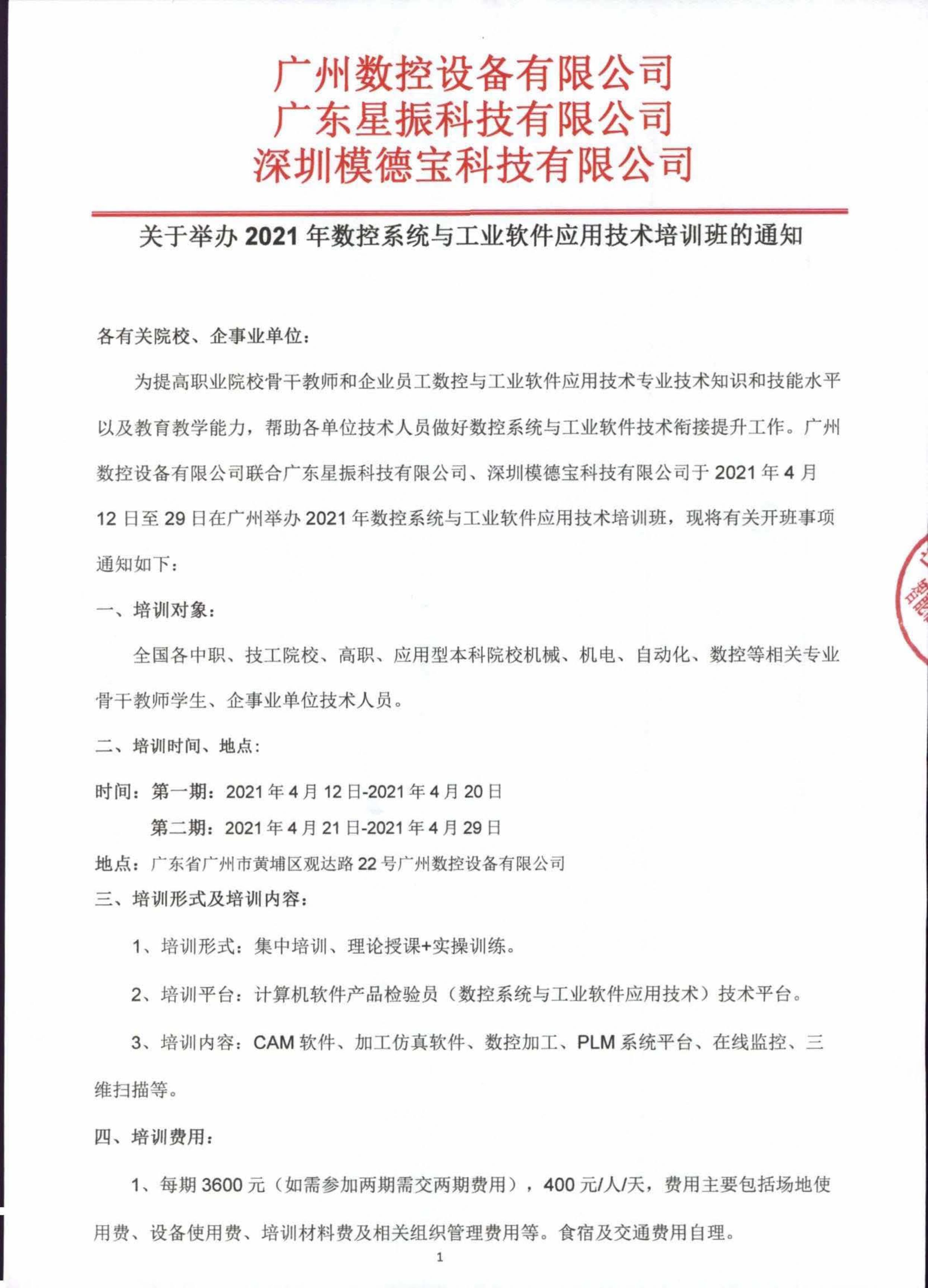 為(wèi)提高(gāo)職業院校(xiào)骨幹教師(shī)和(hé)企業員工數(shù)控與工業軟件應用技(jì)術(shù)專業技(jì)術(shù)知識和(hé)技(jì)能水(shuǐ)平以及教育教學能力,幫助各單位技(jì)術(shù)人(rén)員做(zuò)好數(shù)控系統與工業軟件技(jì)術(shù)銜接提升工作(zuò)。廣州數(shù)控設備有(yǒu)限公司聯合廣州星正科技有限公司、深圳模德寶科技(jì)有(yǒu)限公司于 2021年4月12-20日(第一期)、4月21-29日(第二期)在廣州數(shù)控設備有(yǒu)限公司舉辦2021年數(shù)控系統與工業軟件應用技(jì)術(shù)培訓班。