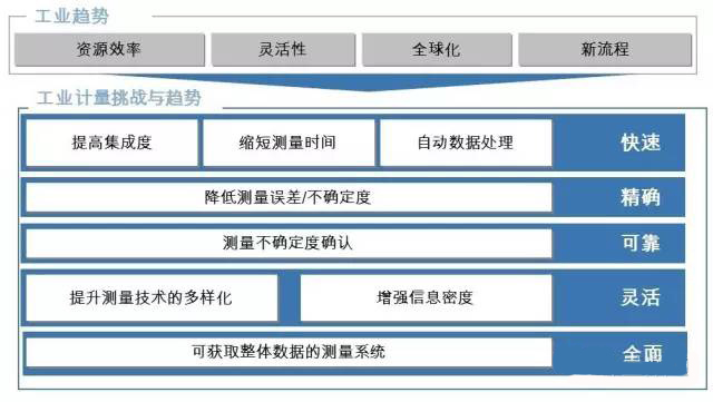 工業計(jì)量的趨勢與挑戰迎合了路線圖中工業制(zhì)造趨勢關鍵詞快速、精确、可(kě)靠(安全)與靈活。與此同時(shí),全面的技(jì)術(shù)例如CT及三維光學法越趨重要,參見以下相關描述(圖 2)。