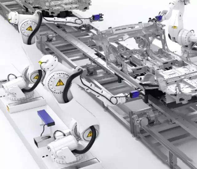 圖3 展示了兩種方案的融合:生(shēng)産線集成融合多(duō)功能圖像處理(lǐ)及多(duō)線激光三角光學傳感器(qì)的機器(qì)人(rén)實現車(chē)身在線檢測。