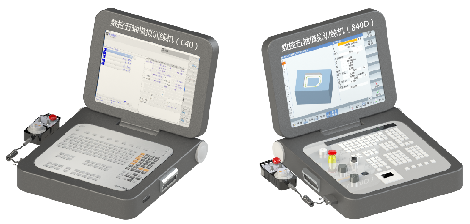 桌面型數(shù)控五軸模拟訓練機(海德漢TNC640或西門(mén)子840D系統)由海德漢TNC640或西門(mén)子840D數(shù)控系統模拟器(qì)、數(shù)字化虛拟機床、嵌入式控制(zhì)系統和(hé)工業級Vericut數(shù)控多(duō)軸仿真軟件等部分組成。可(kě)通(tōng)過數(shù)控系統硬件操作(zuò)面闆進行(xíng)真實編程、操作(zuò)和(hé)驅動數(shù)字化虛拟機床,模拟真實機床進行(xíng)虛拟切削,完全真實模拟數(shù)控五軸機床的安全仿真、操作(zuò)與實際加工過程。